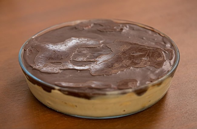 2. Repita o processo até terminar os biscoitos. Por fim, adicione o creme de chocolate e leve à geladeira por no mínimo 3h antes de servir.